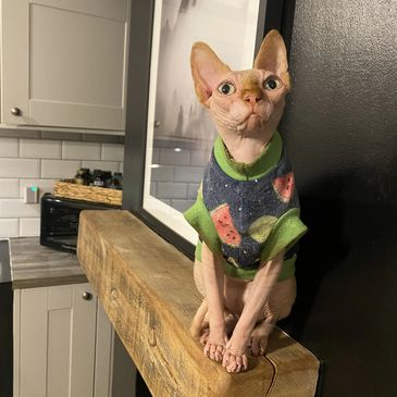 Ahsoka is our Spyhnx, she LOVES to cuddle, play with raw potatoes and cause mischief. Most of all she loves her heated blanket to keep her little tow beans warm.